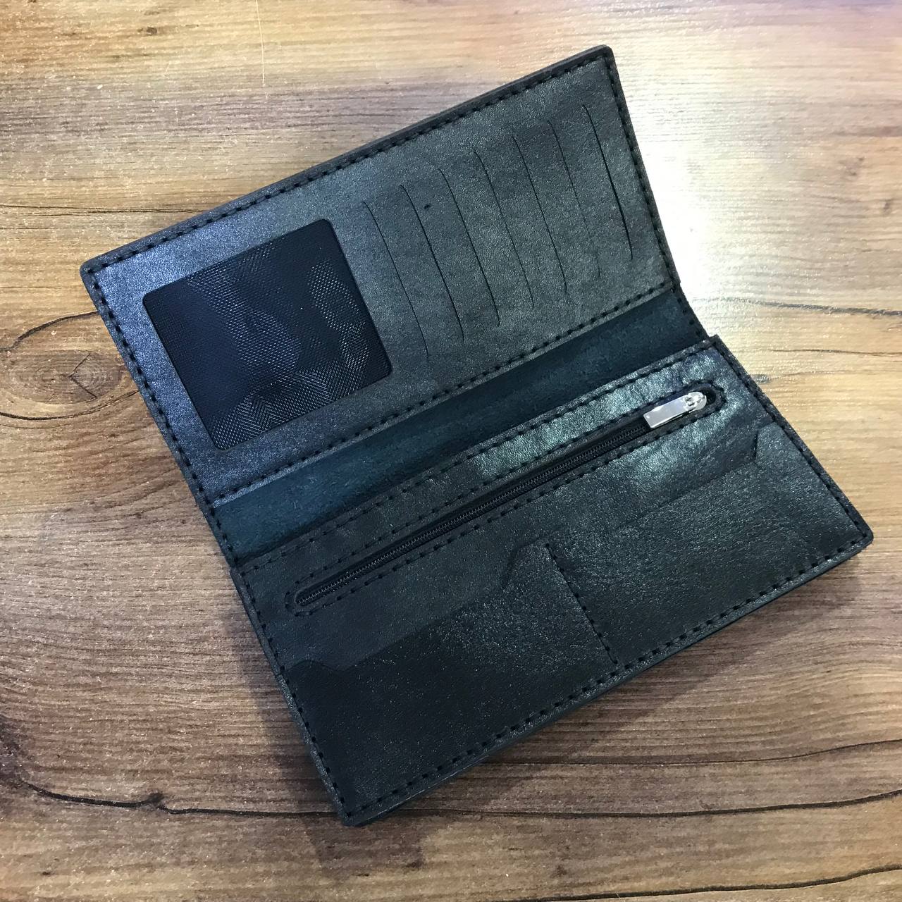 کیف دو لت ساده چرم طبیعی گاوی دستدوز